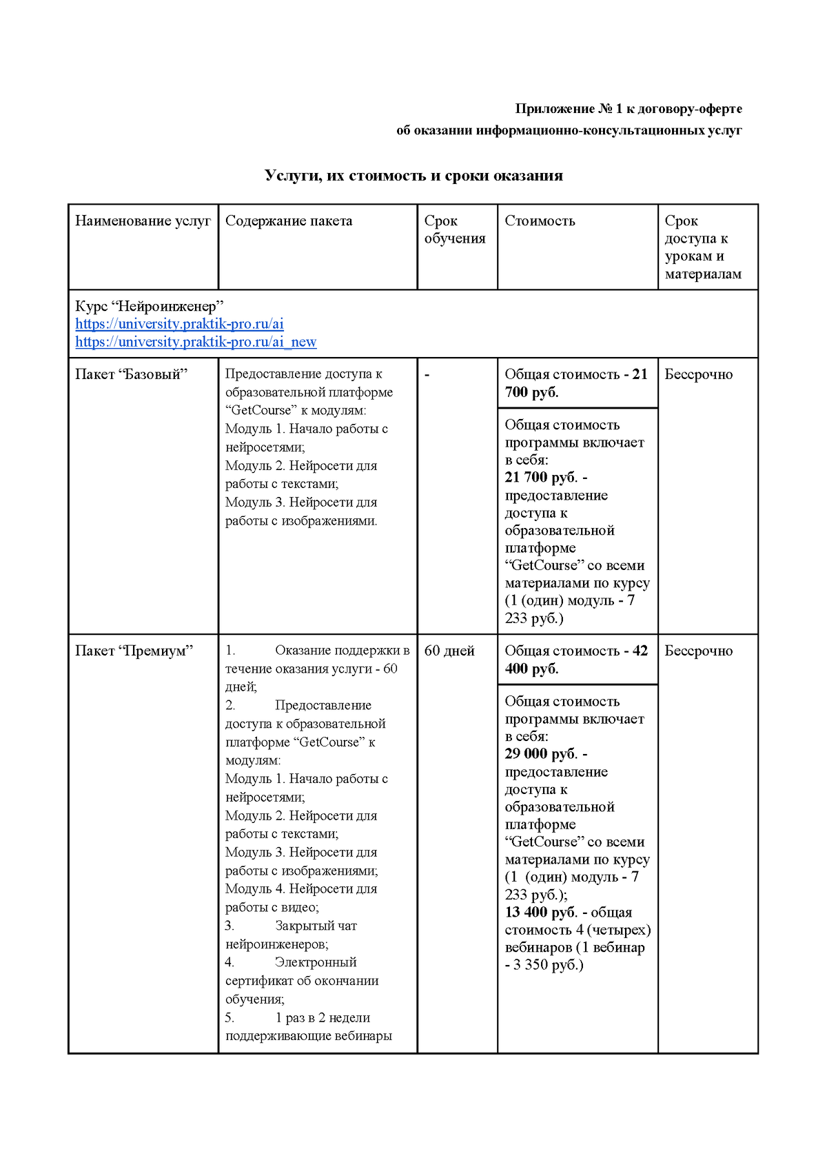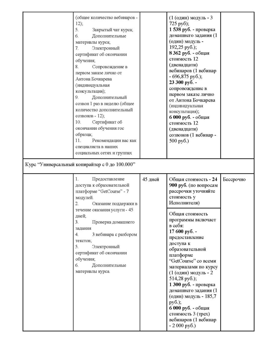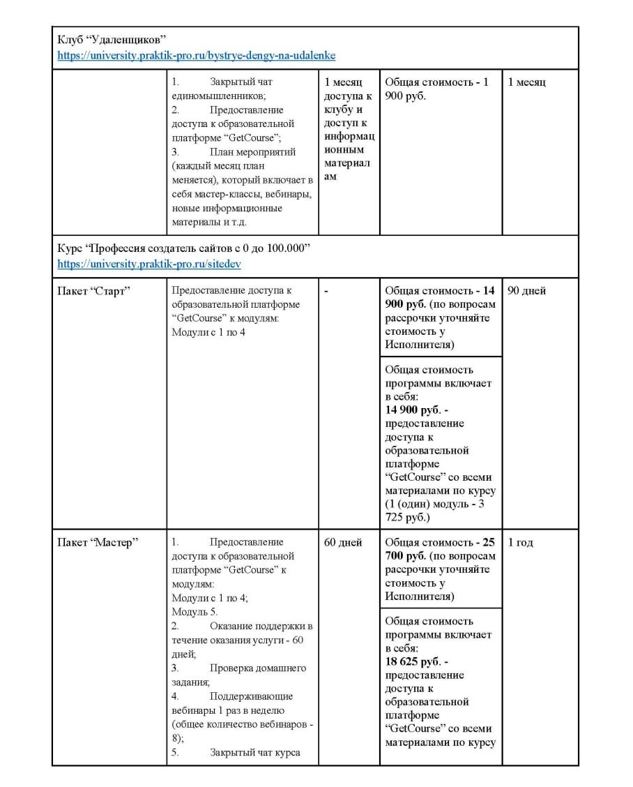 2.3. Темы, программы, стоимость, описание Услуг и форма регистрации размещены на соответствующей странице (Сайте) продажи такой Услуги и/или в Приложении № 1 к настоящему Договору.