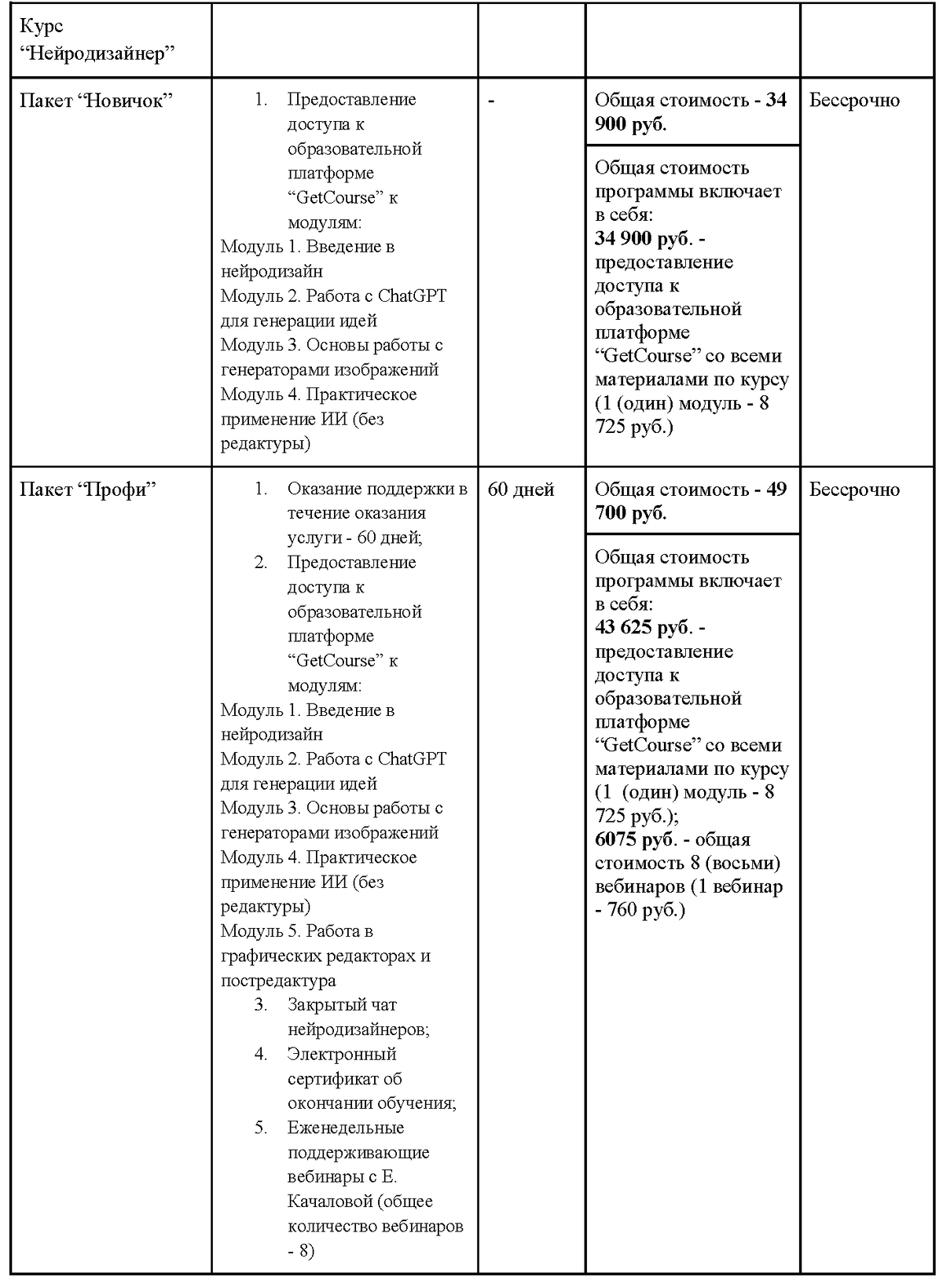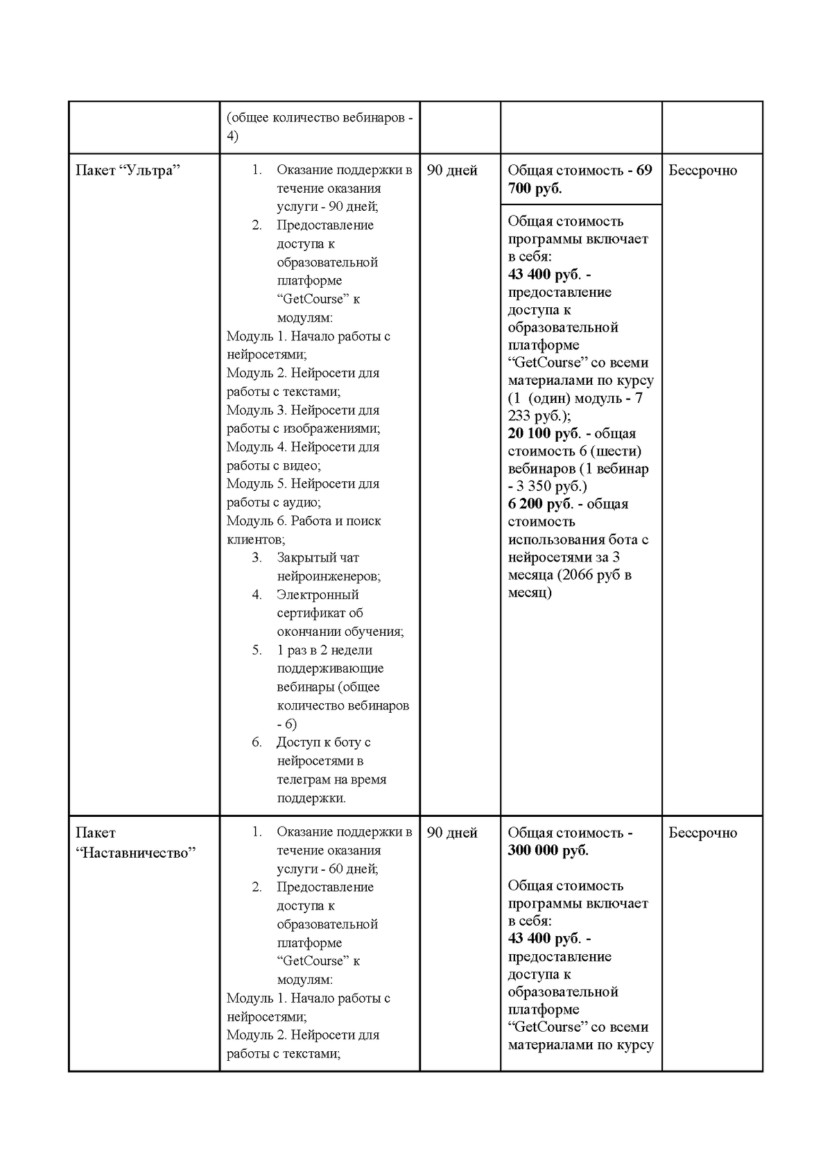4.4.2. Услуги в форме проведения программы продолжительностью более 1 (одного) дня (онлайн-курс);