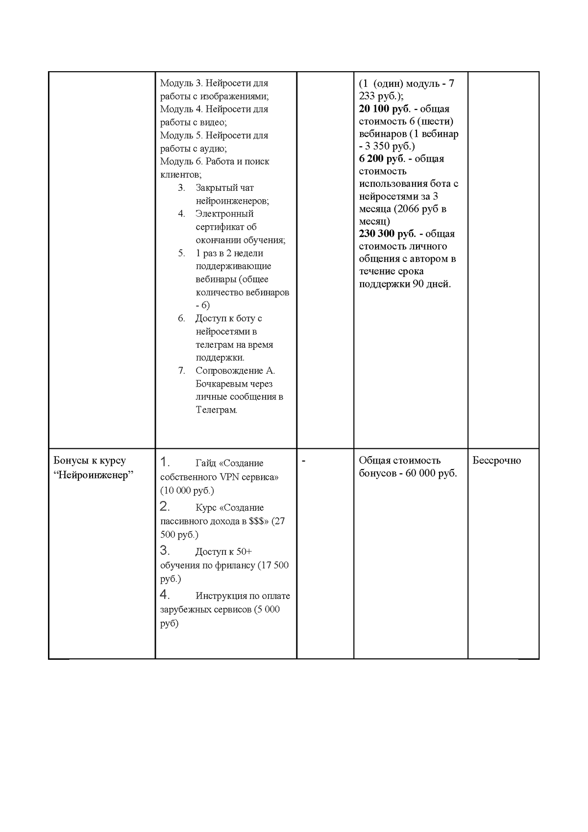 стоимость предоставленных Заказчику информационных материалов (модулям курсов без учета количества пройденный уроков внутри отдельного модуля),