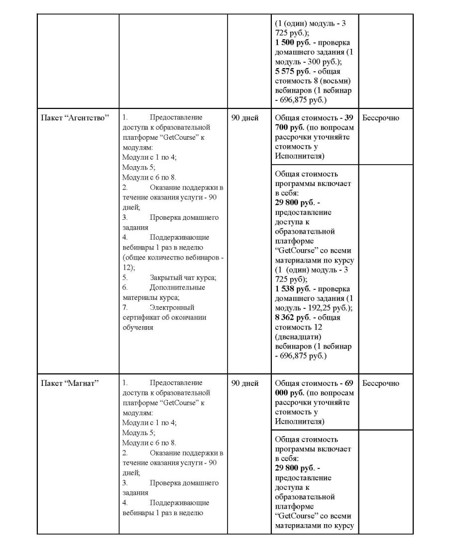 1.7.8. Пакет или Пакет услуг - совокупность определенного набора информационных материалов и мероприятий в виде вебинаров, тематических дискуссий, групповых сессий, инструкций, видео-уроков, домашних заданий, чек-листов, шаблонов, заданий и любых иных документов и информации, объединенных общей тематикой и единым названием.